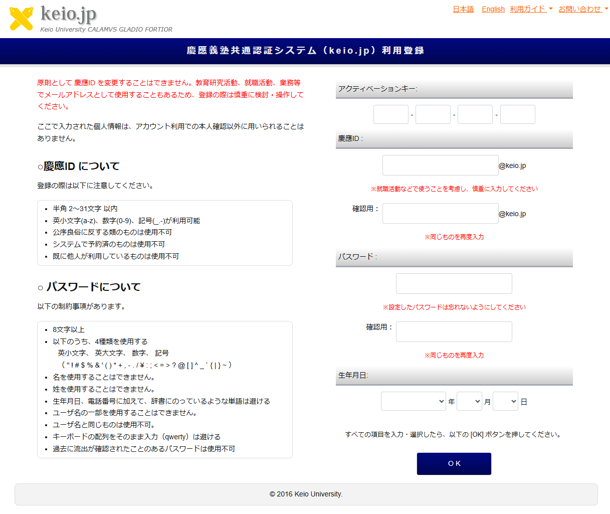 ここでは、登録(慶應IDの取得)手順について説明します。